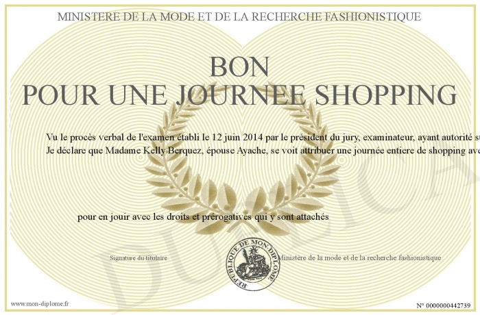 Envoyez par email votre Bon pour une journée shopping personalisé