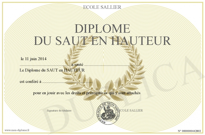 Envoyez par email votre Diplôme du SAUT en HAUTEUR personalisé