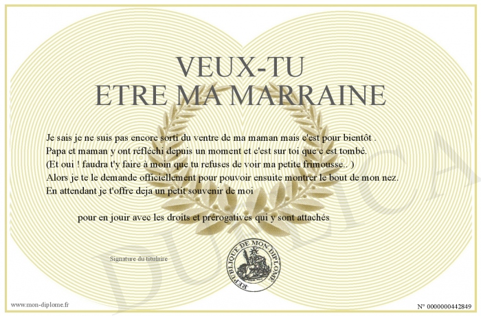 Envoyez par email votre Veux-tu etre ma marraine personalisé