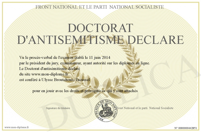 Envoyez par email votre Doctorat d'antisémitisme déclaré personalisé