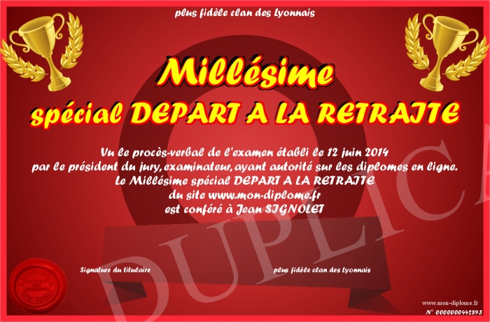 Envoyez par email votre Millésime spécial DEPART A LA RETRAITE personalisé