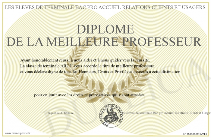 Envoyez par email votre Diplôme de la meilleure professeur personalisé