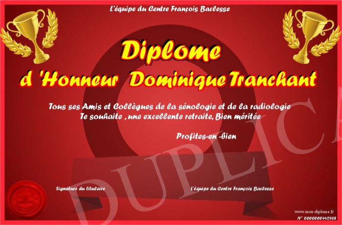 Envoyez par email votre Diplôme d 'Honneur Dominique Tranchant personalisé