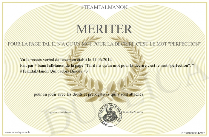 Envoyez par email votre mériter pour la page Tal il n'a qu'un mot pour la decrire c'est le mot -Perfection- personalisé