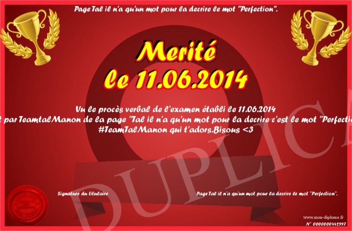 Envoyez par email votre Merité le 11.06.2014 personalisé
