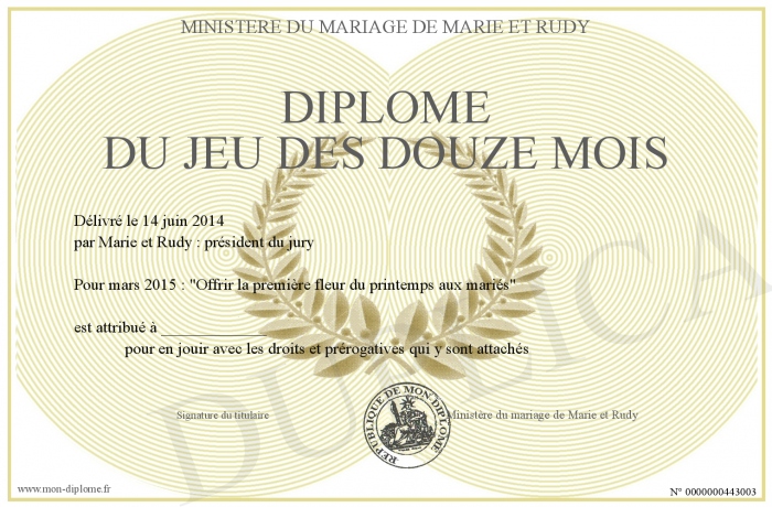 Envoyez par email votre Diplôme du jeu des douze mois personalisé