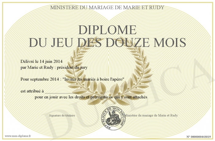 Envoyez par email votre Diplôme du jeu des douze mois personalisé