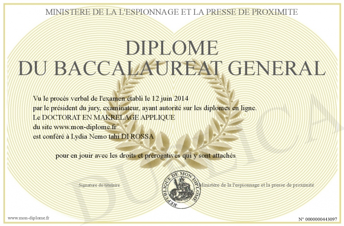 Envoyez par email votre Diplôme du baccalaureat général personalisé