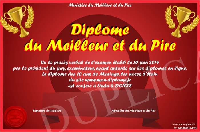 Envoyez par email votre Diplôme du Meilleur et du Pire personalisé