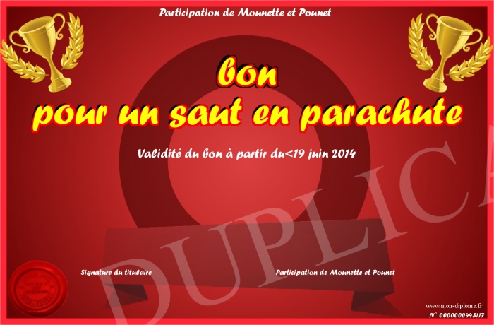 Envoyez par email votre bon pour un saut en parachute personalisé