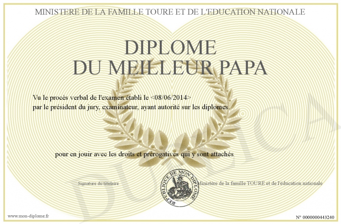 Envoyez par email votre Diplôme du Meilleur PAPA personalisé
