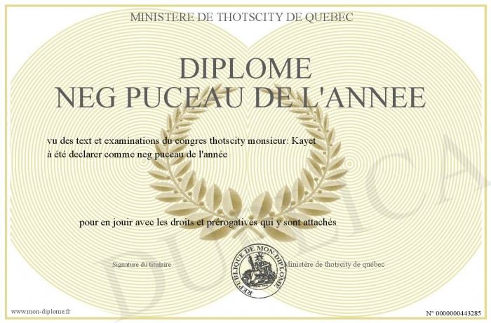 Envoyez par email votre diplome neg puceau de l'année personalisé
