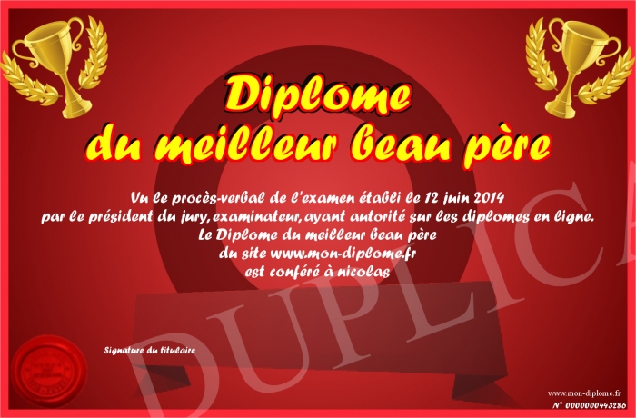 Envoyez par email votre Diplôme du meilleur beau père personalisé
