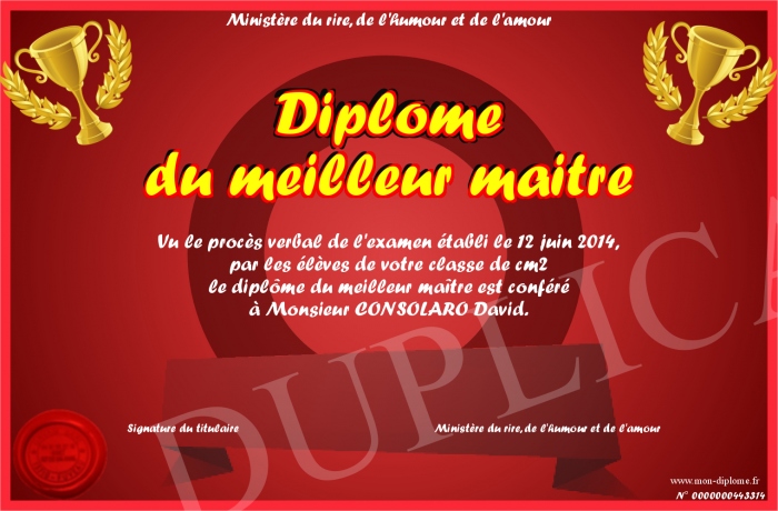 Envoyez par email votre Diplome du meilleur maitre personalisé