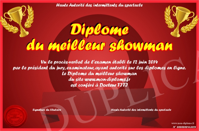 Envoyez par email votre Diplome du meilleur showman personalisé