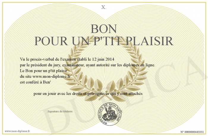 Envoyez par email votre Bon pour un p'tit plaisir personalisé
