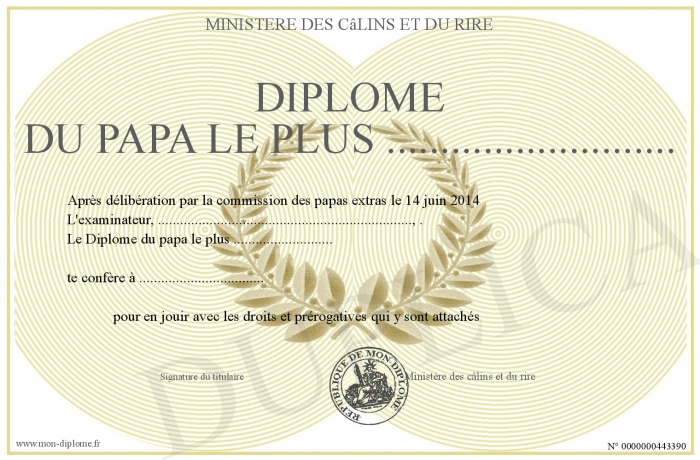 Envoyez par email votre Diplôme du papa le plus ........................... personalisé