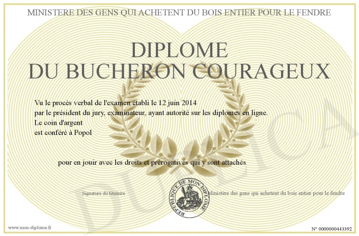 Envoyez par email votre Diplome du bucheron courageux personalisé