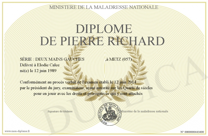 Envoyez par email votre Diplôme de Pierre Richard personalisé