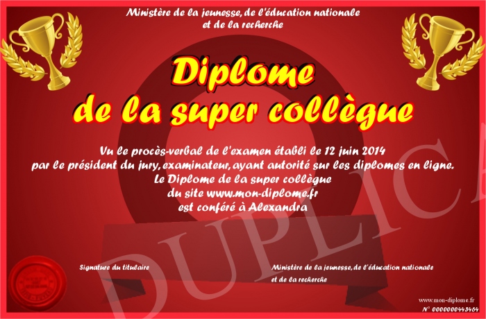 Envoyez par email votre Diplôme de la super collègue personalisé