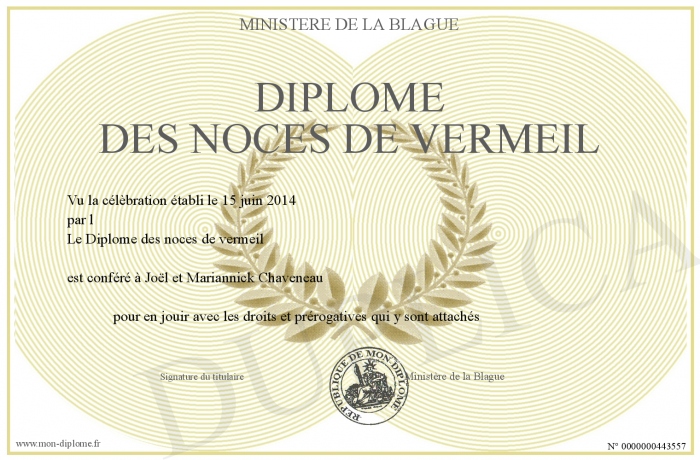 Envoyez par email votre Diplôme des noces de vermeil personalisé