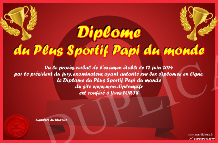 Envoyez par email votre Diplôme du Plus Sportif Papi du monde personalisé