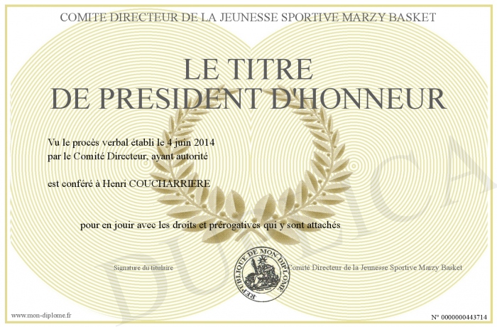 Envoyez par email votre Le titre de Président d'honneur personalisé