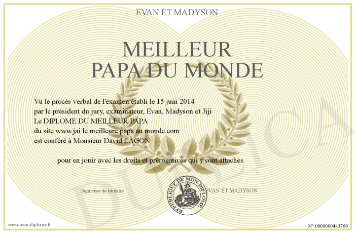 Envoyez par email votre MEILLEUR PAPA DU MONDE personalisé