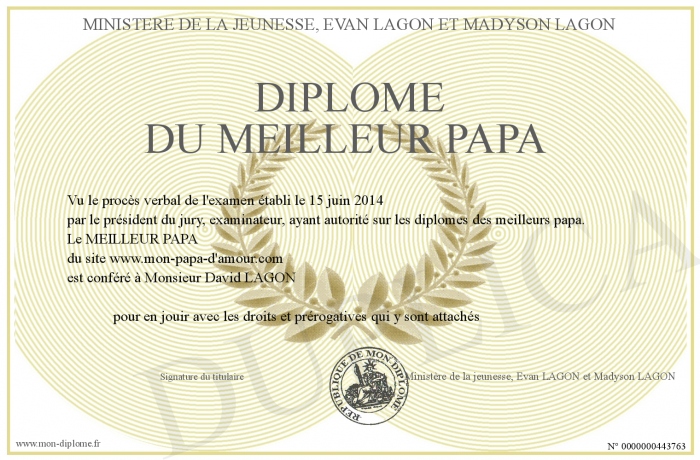 Envoyez par email votre Diplôme du Meilleur Papa personalisé