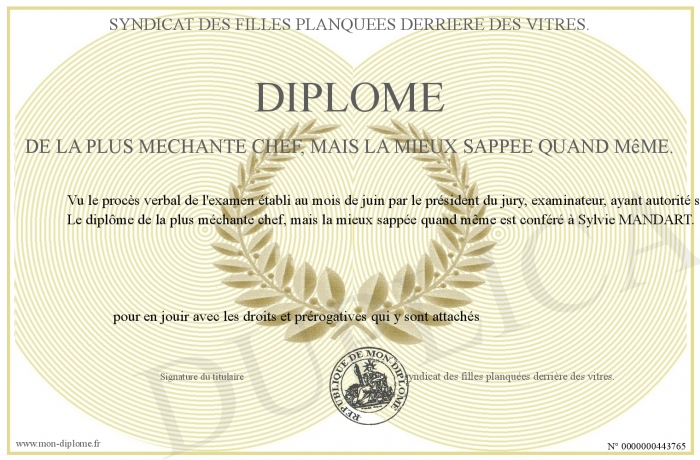 Envoyez par email votre diplôme de la plus méchante chef, mais la mieux sappée quand même. personalisé