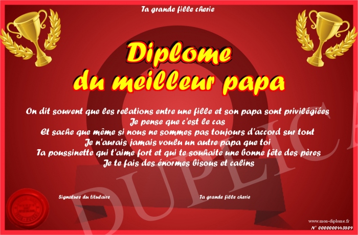 Envoyez par email votre Diplôme du meilleur papa personalisé