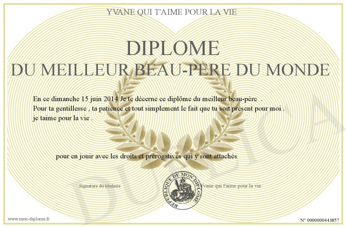 Envoyez par email votre Diplôme du Meilleur Beau-Père du Monde personalisé