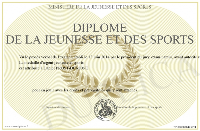 Envoyez par email votre diplome de la jeunesse et des sports personalisé