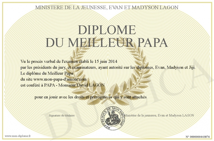 Envoyez par email votre Diplôme du Meilleur Papa personalisé