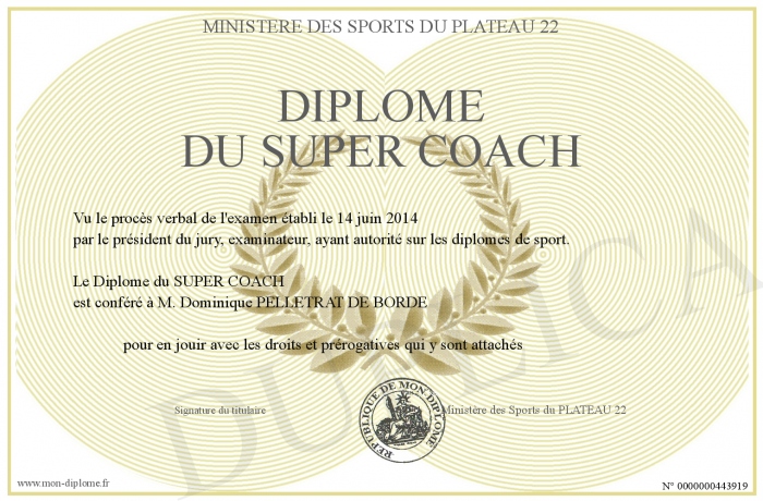 Envoyez par email votre Diplôme du SUPER COACH personalisé