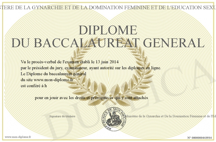 Envoyez par email votre Diplôme du baccalaureat général personalisé