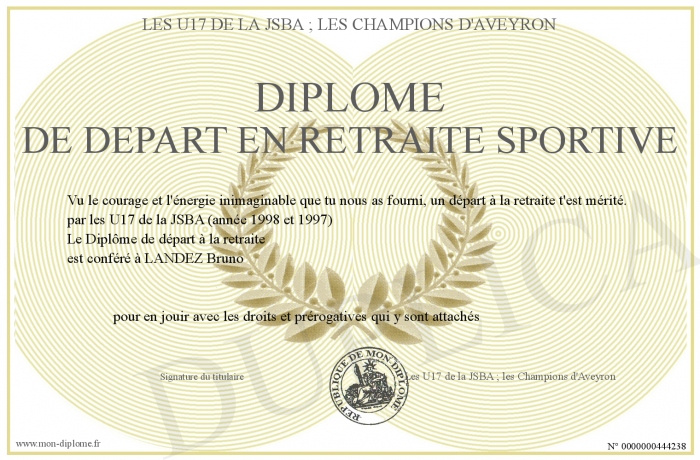 Envoyez par email votre Diplôme de départ en retraite sportive personalisé