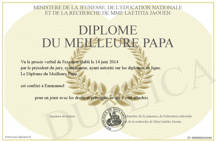 Envoyez par email votre Diplôme du Meilleure Papa personalisé