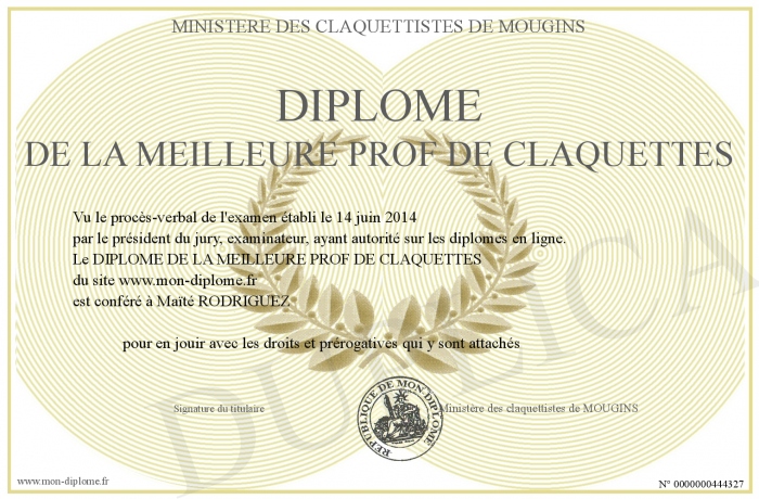 Envoyez par email votre DIPLOME DE LA MEILLEURE PROF DE CLAQUETTES personalisé