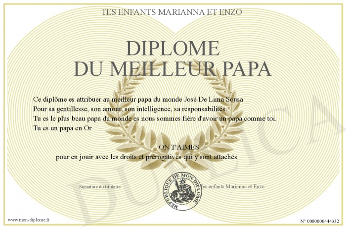 Envoyez par email votre Diplôme du meilleur papa personalisé