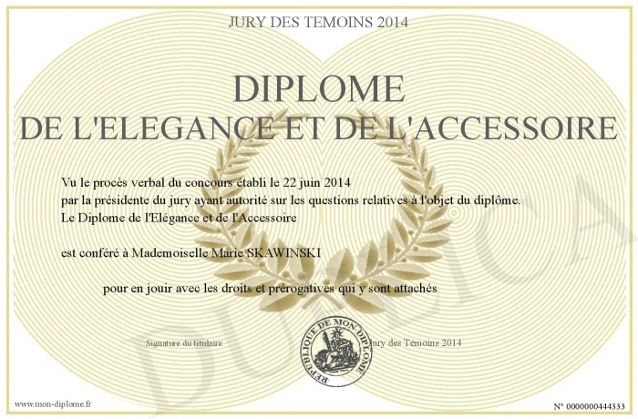 Envoyez par email votre Diplôme de l'Elégance et de l'Accessoire personalisé