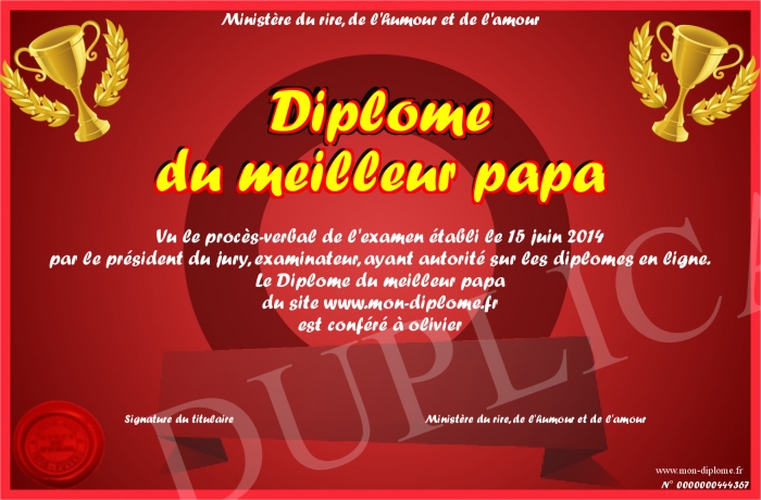 Envoyez par email votre Diplome du meilleur papa personalisé