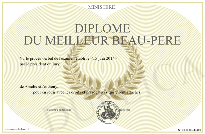 Envoyez par email votre Diplôme du meilleur beau-père personalisé