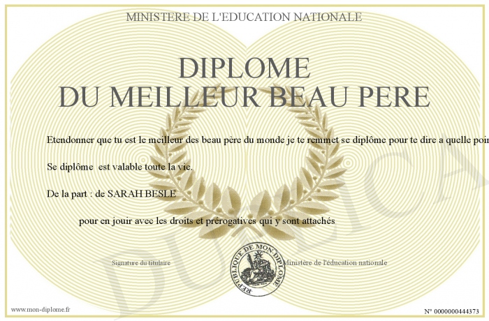 Envoyez par email votre Diplôme du Meilleur Beau Père personalisé