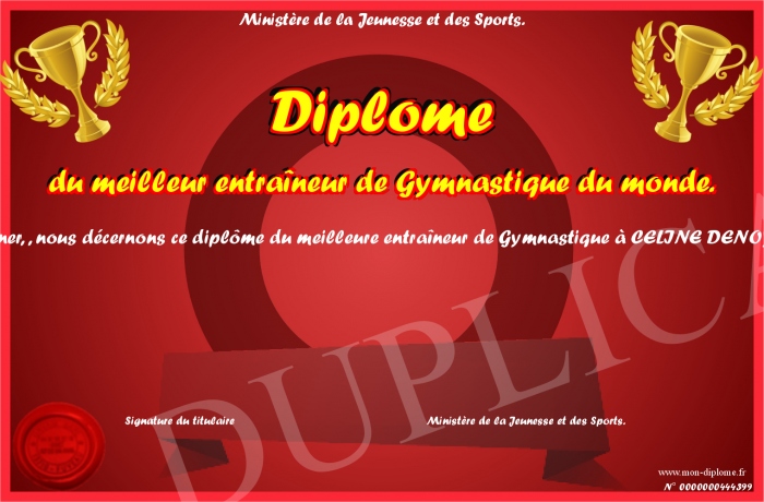 Envoyez par email votre Diplôme du meilleur entraîneur de Gymnastique du monde. personalisé