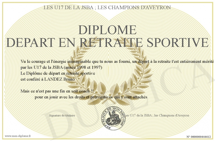 Envoyez par email votre Diplôme Départ en retraite sportive personalisé