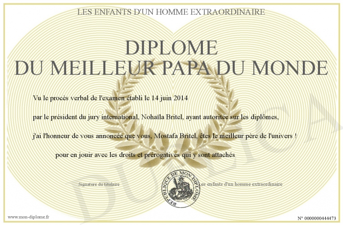 Envoyez par email votre Diplôme du meilleur Papa du Monde personalisé