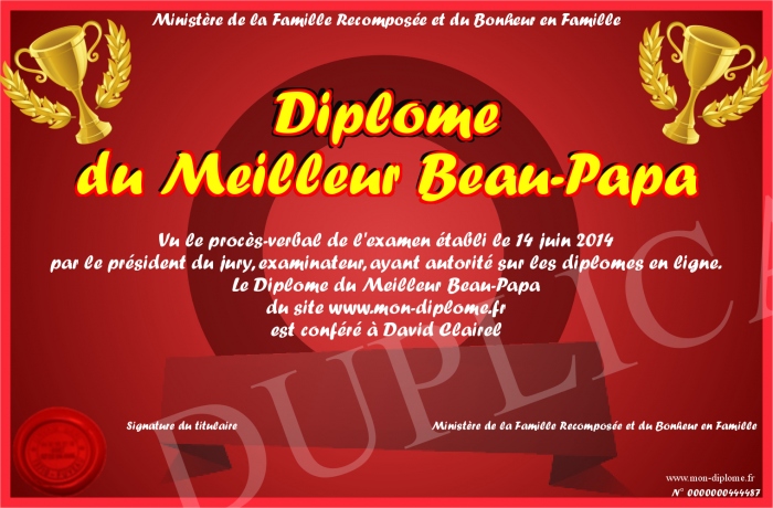 Envoyez par email votre Diplôme du Meilleur Beau-Papa personalisé