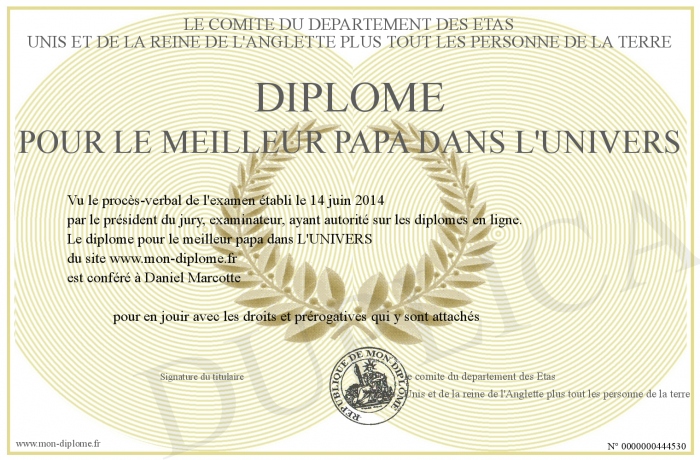 Envoyez par email votre diplome pour le meilleur papa dans L'UNIVERS personalisé