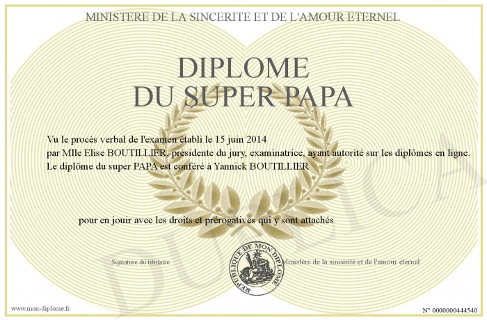 Envoyez par email votre Diplôme du super PAPA personalisé